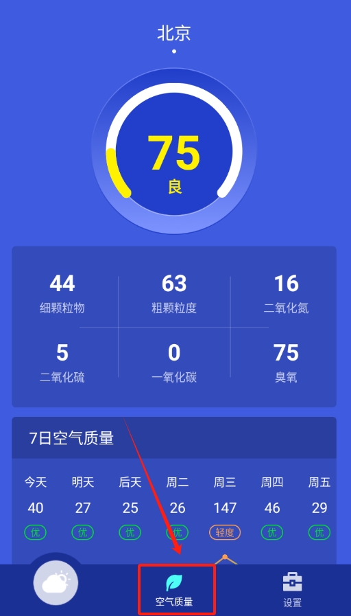 4、想了解空气质量,在软件里找到空气质量页面,点击进去就能看到相关数据,方便掌握空气情况。