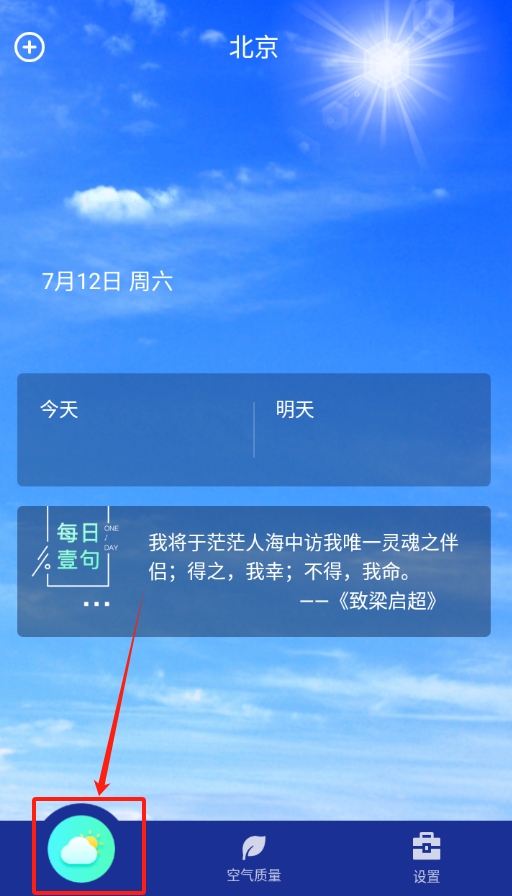3、进入软件首页,就能直接查看天气预报,上面有温度、天气状况等信息,一目了然很清楚。