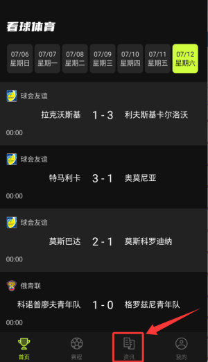 2、在首页导航栏点击"资讯"选项,浏览最新的体育新闻和赛事动态。