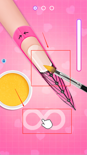 1、基础玩法围绕接待顾客展开,根据需求完成指定美甲设计,获得评分和金币用于后续升级使用。
