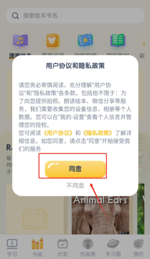 1、点击同意按钮,快速进入应用界面,享受丰富多彩的学习资源。