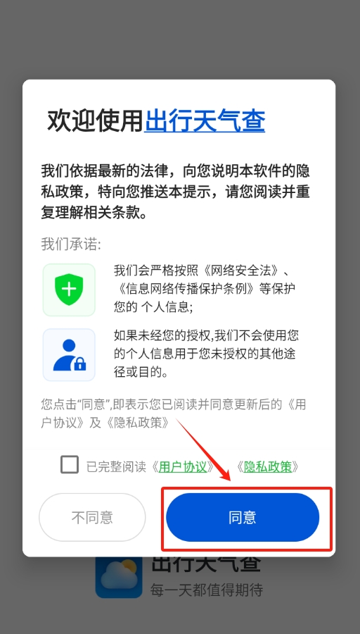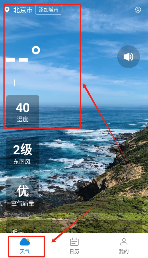 1、下载安装后打开,同意协议并允许定位,首页会显示当前城市的实时天气信息。