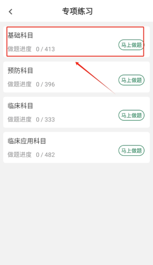 2、专项练习界面,允许学员选择不同类型的题库,有针对性地解决各类难题,逐步提高解题能力。