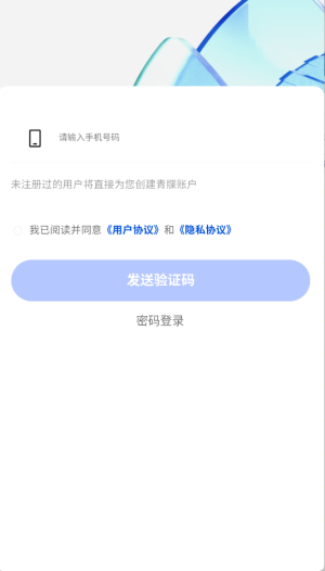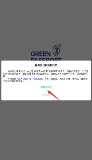 1、启动青牒碳账户APP后,首次使用需阅读并同意服务协议和隐私政策,点击确认进入主界面。
