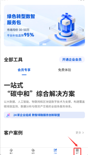 2、在首页点击"资产"选项,进入账户管理页面查看碳积分情况。