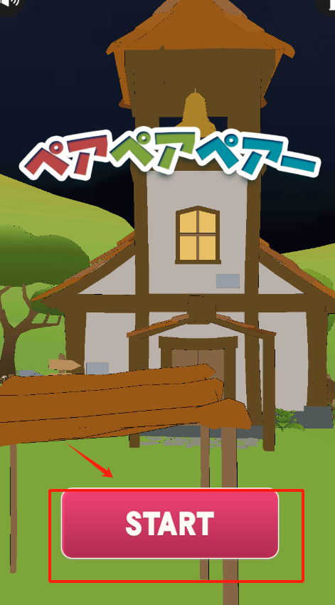 1、点粉色START按钮开始游戏,箭头指按钮,顶部日文可能是游戏名称。