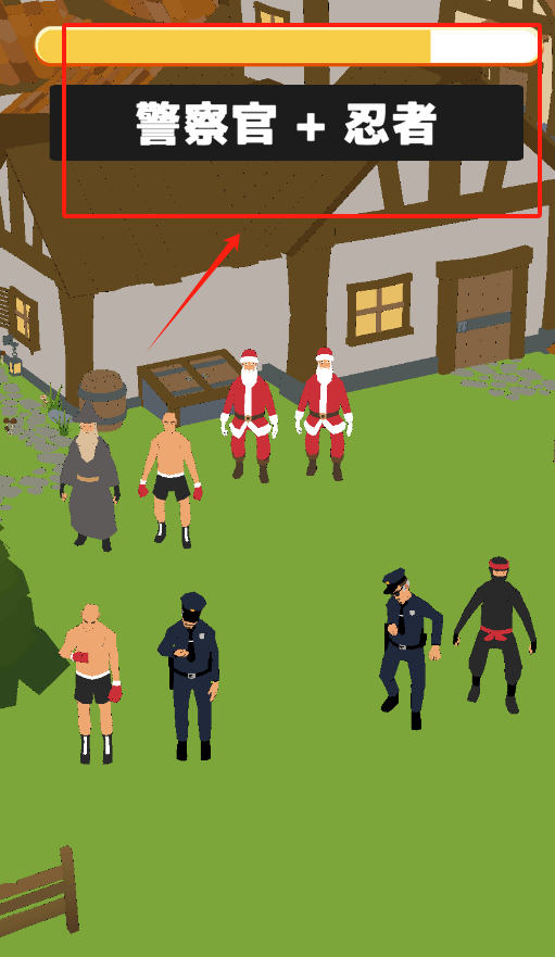 2、看角色配对提示,点相同组合的角色,比如圣诞老人和忍者配对。