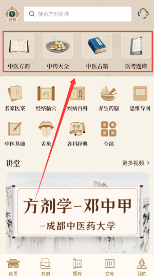 3、课程中心包含方剂学,中药学等12门核心科目,由三甲医院主任医师录制讲解。