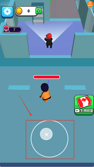 2、下侧控制角色移动方向,合理使用掩体和障碍物隐藏身形避免被发现。