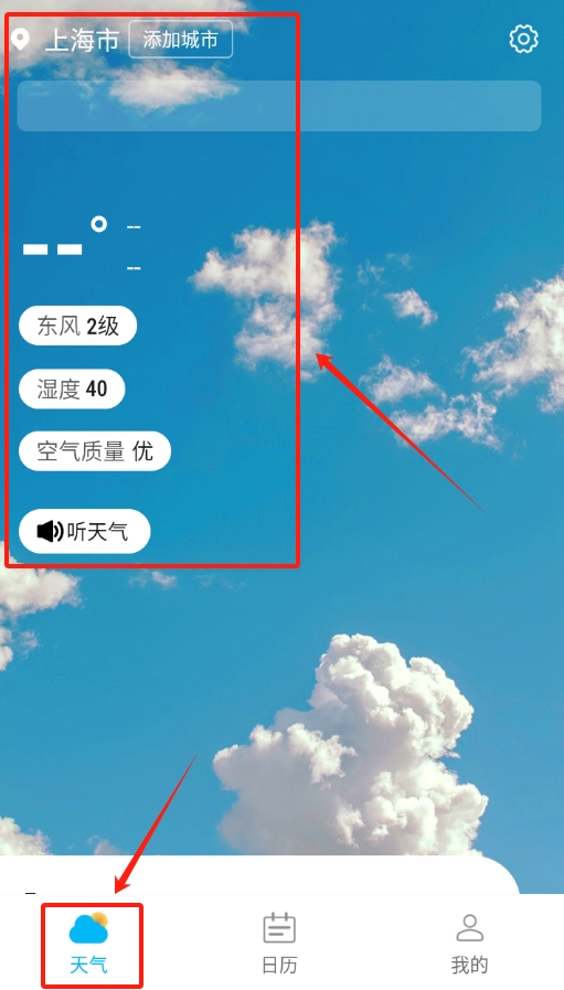 1、下载安装后打开,同意协议并允许定位,首页会显示当前城市天气,可上下滑动查看详细数据。