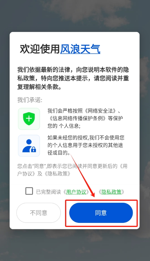 1、打开软件后,先仔细阅读软件协议的内容,确认没有问题的话,就点击同意选项,这样才能继续使用软件的各项功能。