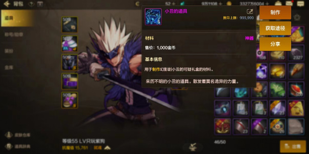 3、通过消耗小丑印章(刷图掉落)以及无色可以制作,使用【神秘的小丑幻影】将已有的小丑套升级。