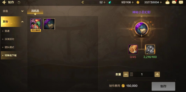 2、点击制作进入【特殊地下城】,找到【神秘的小丑幻影】。