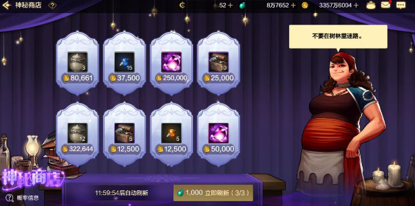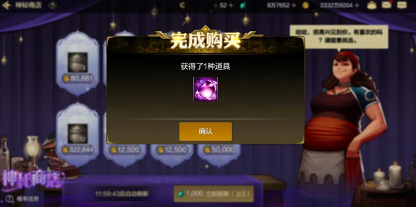 2、进入神秘商店以后,消耗金币可以购买对应的材料道具。