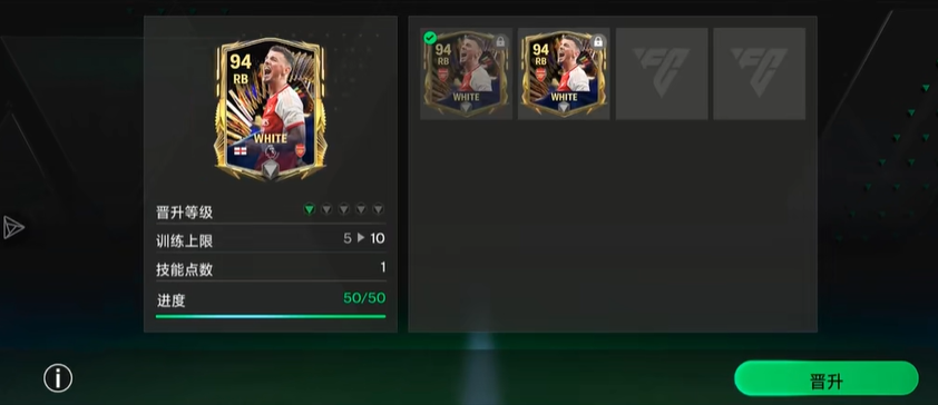 4、晋升需要使用同名卡或通用晋升卡,完成晋升可以获取技能点数奖励;