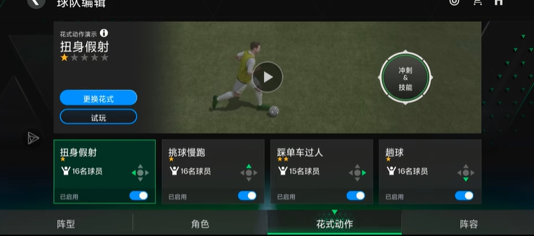 4、另外还可以设置花式动作,目前推荐扭身假射以及高油;