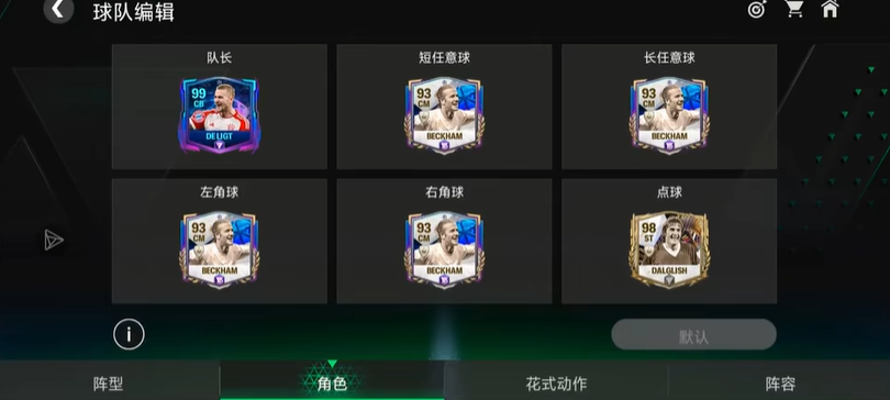 3、在完成球员在不同阵型中位置的编辑后,可以进一步编辑队长、点球主罚手等位置;