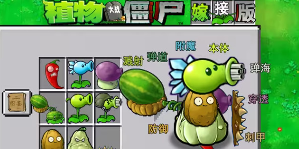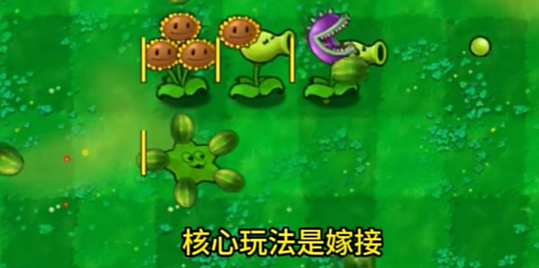3、不同属性的植物之间进行嫁接会有不同的增强,比如让豌豆射手和坚果结合,生成坚果豌豆。
