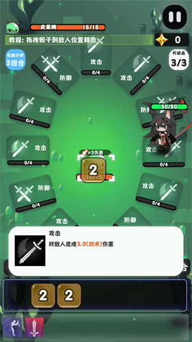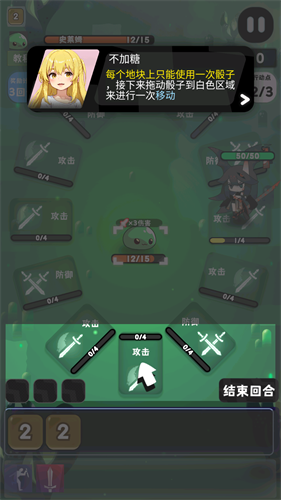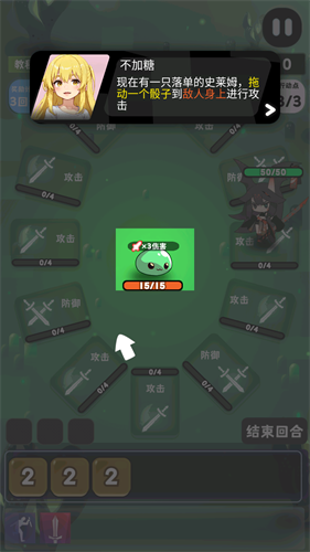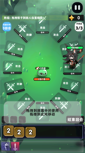 2、角色处在攻击格上时,通过将点数拖动至怪物身上即可发起攻击;