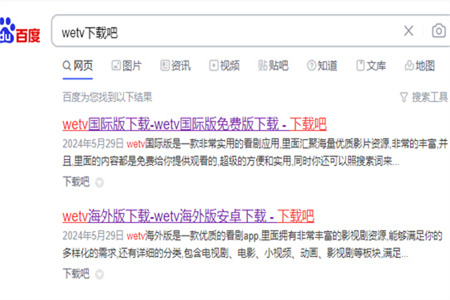 1、首先在百度输入【wetv下载吧】点击搜索。