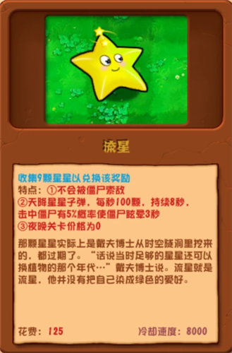 通过收集星星,可以用以兑换专属星光卡背的植物以及道具;