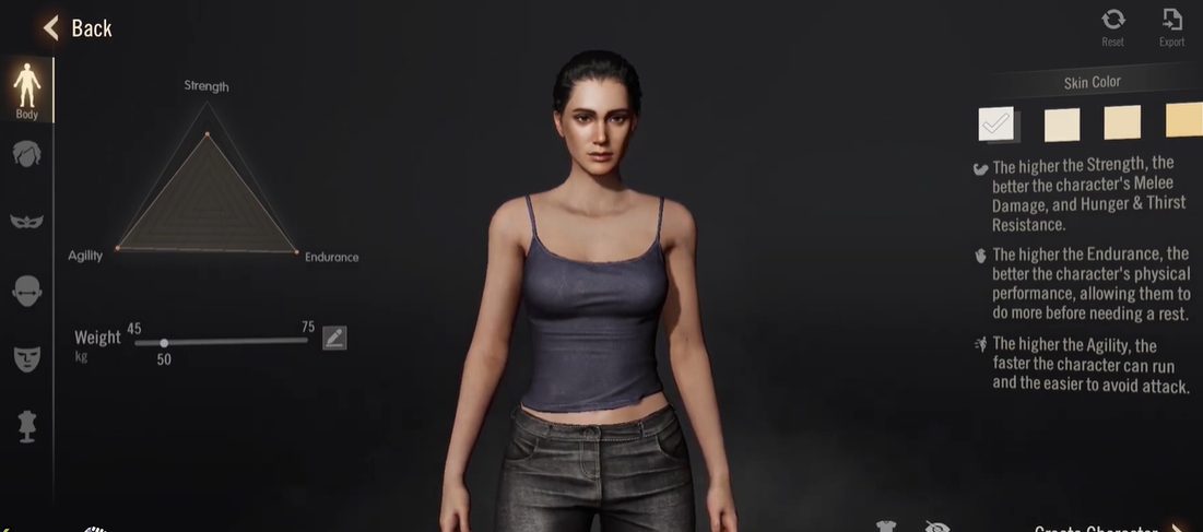 1、角色发展:利用游戏提供的复杂捏脸系统,不仅可以定制外观,还可以根据游戏情况调整角色属性以适应不同的生存挑战。