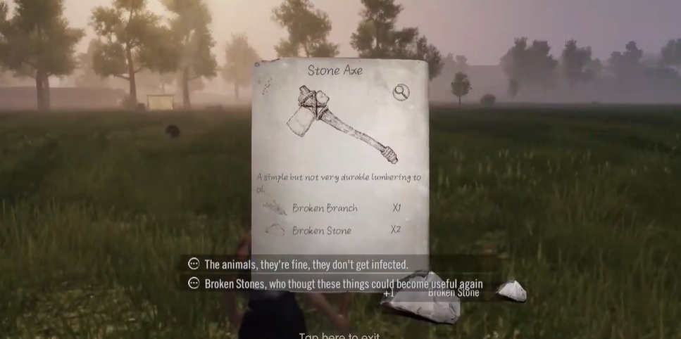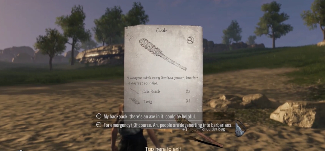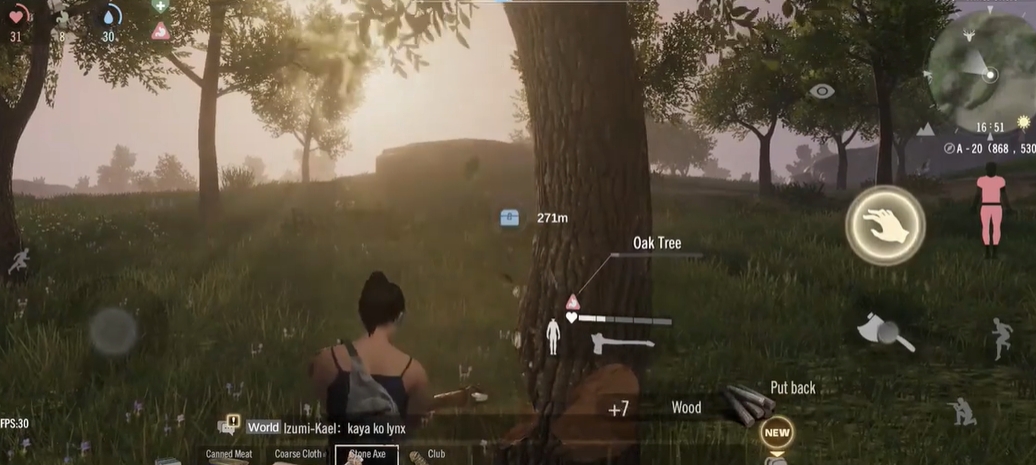 3、玩家可以使用斧子砍树来获得木材,帮助自己制作工具;