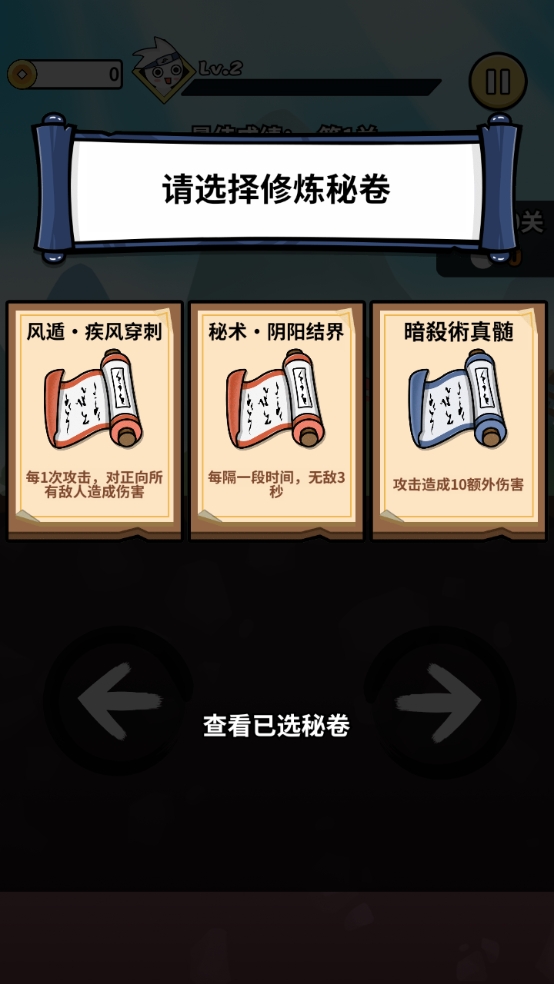 4、击败敌人获得经验可以提升等级,升级后可以随机获得修炼秘卷;