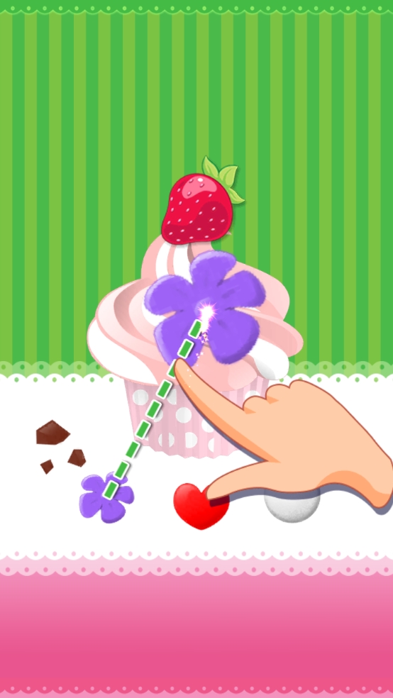 3、根据指引将紫色的小花放到蛋糕上即可;