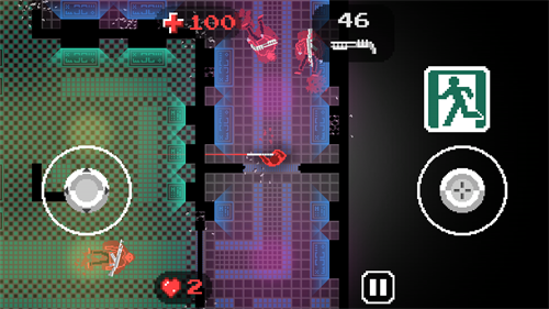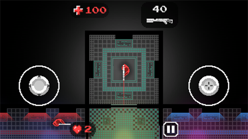 1、游戏采用双虚拟摇杆的操作方式,左侧摇杆控制移动,右侧摇杆控制射击方向;