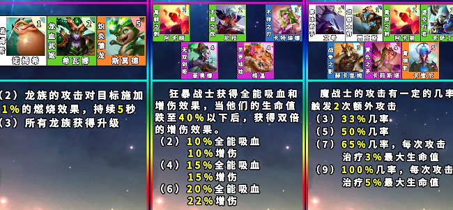 龙族:弈子如诺姆希、希瓦娜等,攻击和技能能造成真实伤害和减疗效果,3龙族时可以升级龙族的棋子技能。