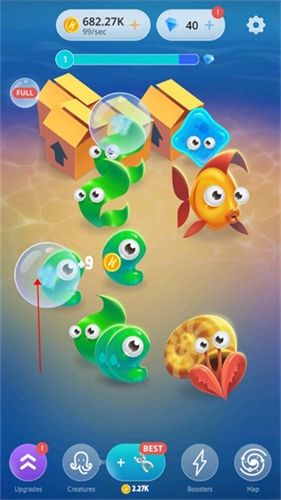 2、画面中也会随机出现气泡,通过点击气泡同样可以得到新物种;