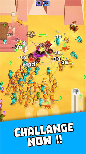 1、游戏以虚拟摇杆的方式操作车辆行进,同时车辆会用装备的武器对僵尸继续自动攻击;