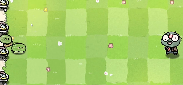 2、僵尸刷新后,根据僵尸所在位置,对应的方式西瓜、豌豆等植物。