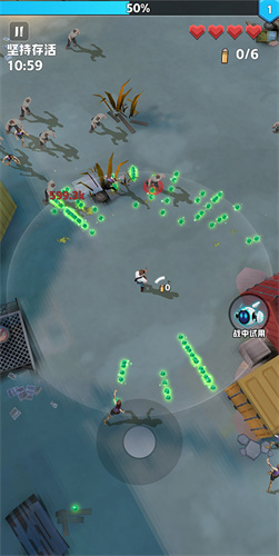 5、玩家需要尝试在规定时间内不被击败,不断尝试击杀更多僵尸以提升自身战斗力应对不同敌人。