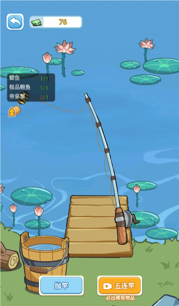 4、游戏加入了钓鱼的玩法设定,通过抛竿进行钓鱼,有机会获得食材以及各种道具。