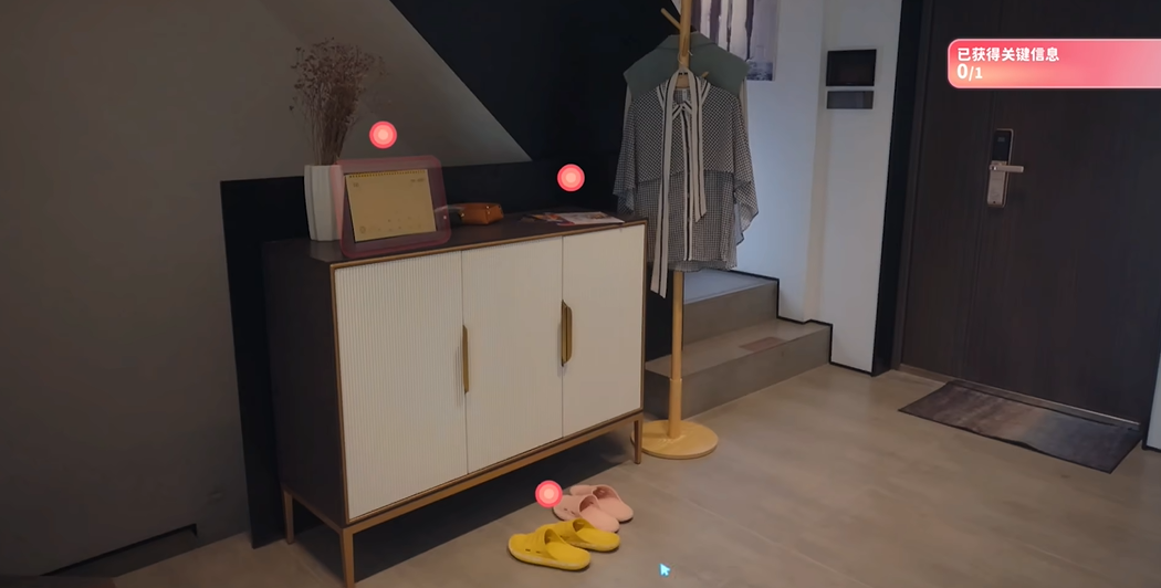 2、通过点击场景中的红点,可以进行场景间的移动以及物品的交互;