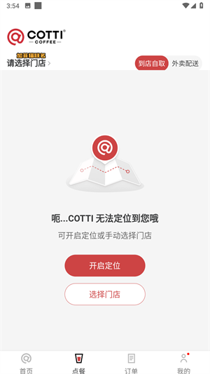 2、进入点餐页面,你只需开启定位,进行到点自取以及外卖的配送。