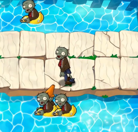 4、僵尸敌人会从画面右侧不断发起进攻,需要合理利用拥有攻击能力的植物击败这些僵尸;