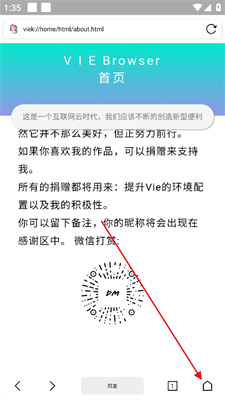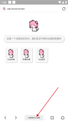 1、打开Vie浏览器,点击下图所示的右下角按钮。