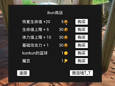 4、玩家还可以在IKUN商店通过消耗金币获取属性提升;