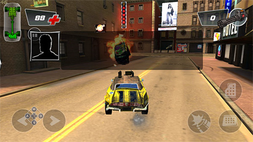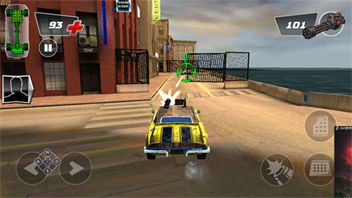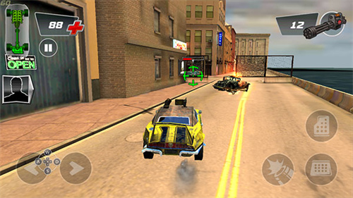 2、在游戏中以第三人称视角的形式展开,通过方向键可以控制车辆进行转向,右侧按键负责加减速以及攻击;