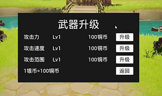 3、通过与投石机进行互动,可以打开武器升级菜单,通过消耗相应铜币即可对武器进行升级,从而获取更强战斗力;