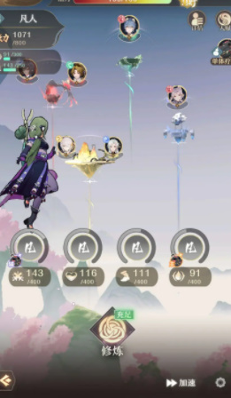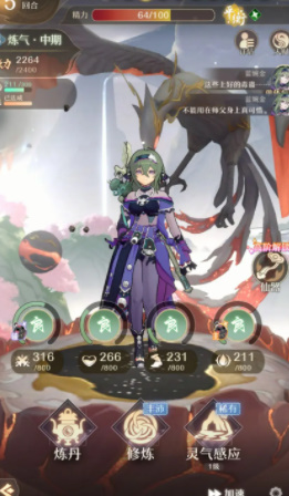 在进入炉内之前,御境大人们可以根据自己的需求,选择想要养成的弟子以及属性职业方向,选定弟子后就可以配上准备好的执念卡啦~而在进入炉内后,养成弟子主要是通过修炼和奇遇,辅以丹药协助的方式,通过各类随机选项进行提升修炼。