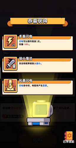 3、完成战斗之后能选择强大的武器和技能来提升战斗力。