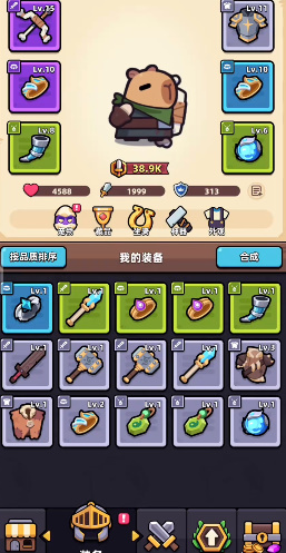 5、针对性的强化角色,换上各种类型的装备,全面的提升水豚的属性和战斗力。