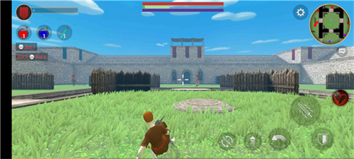 3、游戏采用第三人称的视角表现,通过虚拟摇杆控制角色移动战斗;