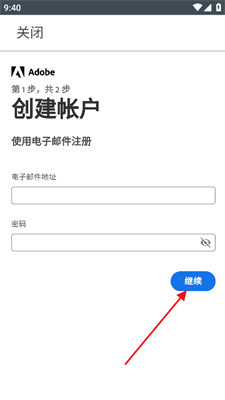 3、输入电子邮件地址和密码即可完成账号的注册了。