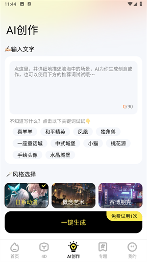 3、进入AI创作,可以一键生成你想要的壁纸。