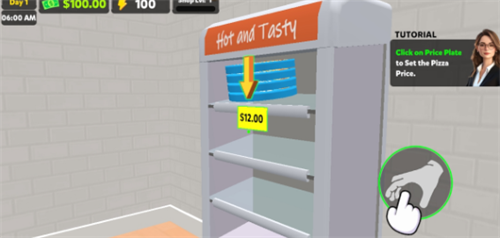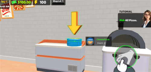 5、制作完成的披萨会在机器旁的放置,玩家靠近后就能通过互动键拿起;
